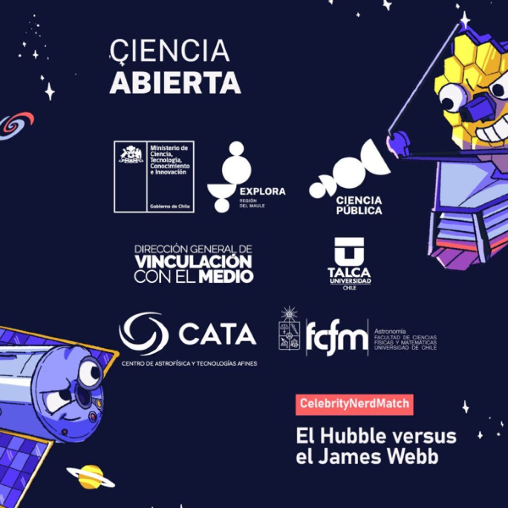 Una nueva edición de “Celebrity Nerd Match” se llevará a cabo esta tarde a las 20:00 horas, en donde el telescopio espacial Hubble será “defendido” por el astrónomo Uchile-Cata y Ph.D en Astrofísica de la U. Harvard, César Fuentes. Por la otra esquina se encontrará Bernardita Ried, Licenciada en ciencias mención Astronomía y Física de la Uchile y divulgadora científica del Observatorio Astronómico Nacional, quien hablará sobre el telescopio James Webb.